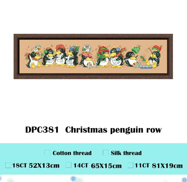 Borduurpakket Kerst pinguïn rij kruissteek set met linnen en katoendraad