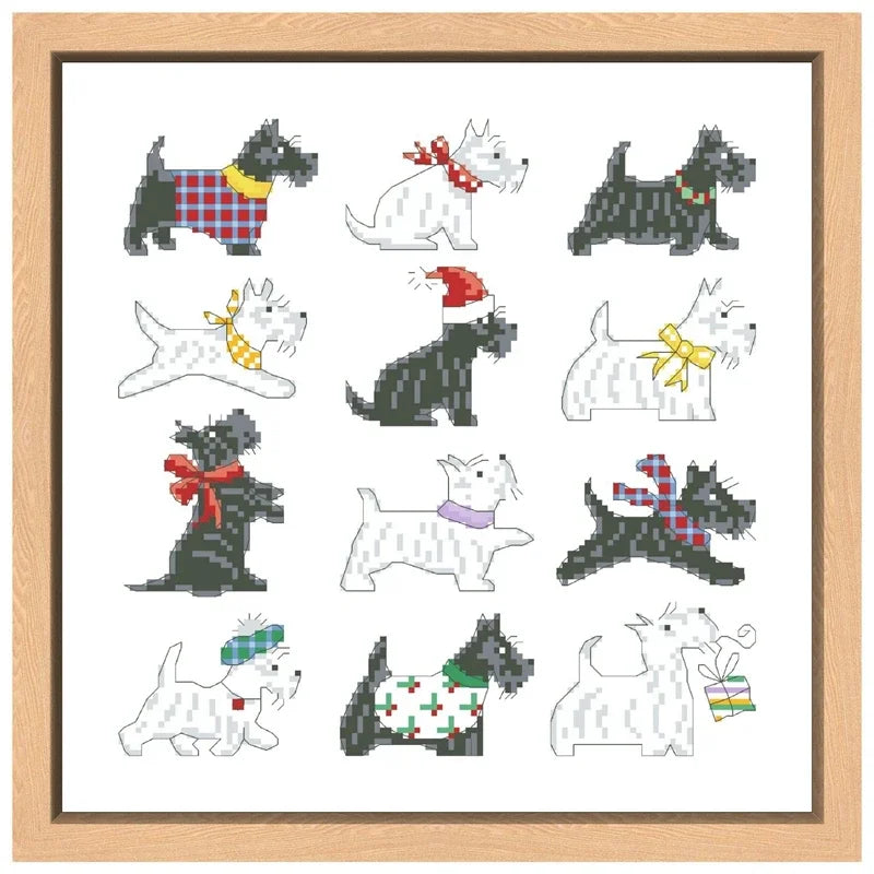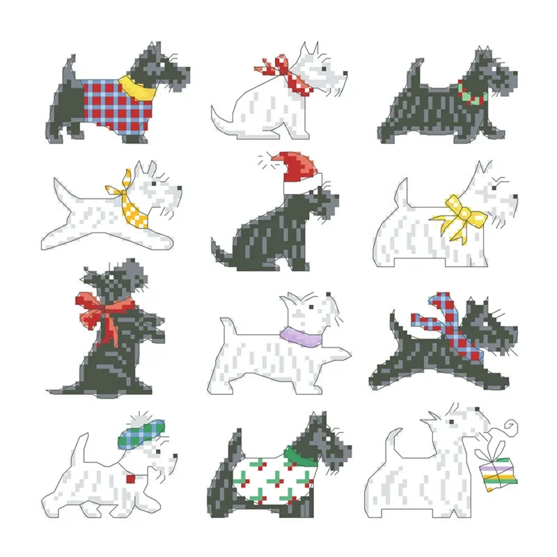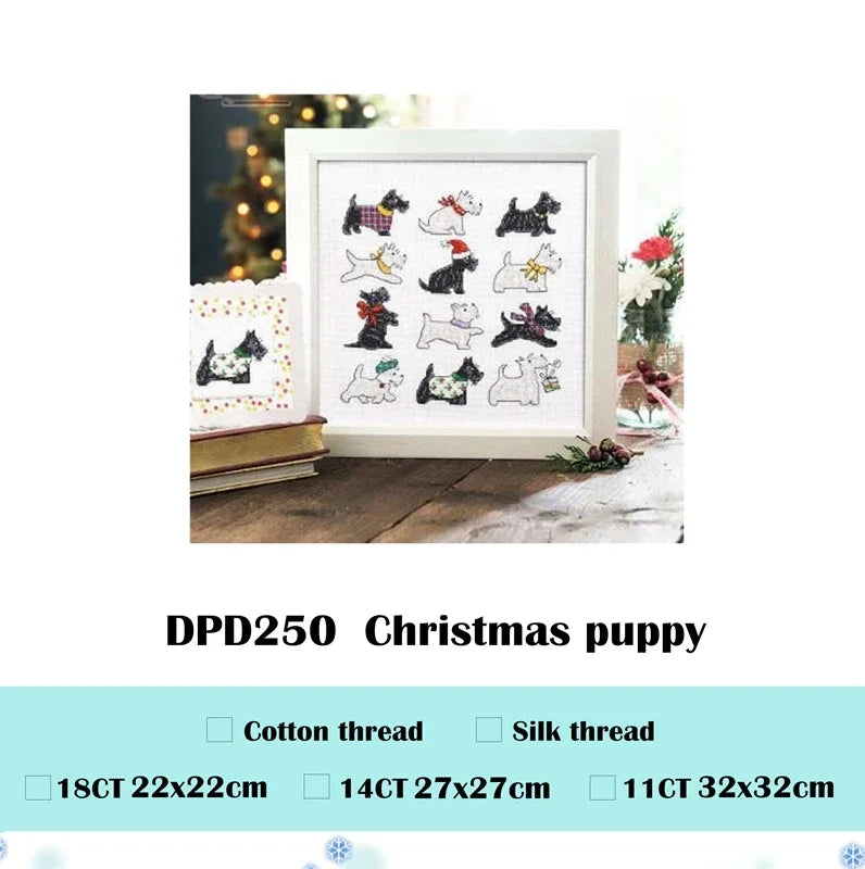 Borduurpakket Kerst puppy kruissteek set met katoen en onbedrukte stof