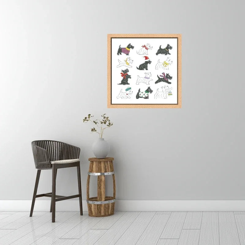Na voltooiing kun je het werk inlijsten en ophangen als sfeervolle wanddecoratie. Het winterse tafereel met de puppy is een echte blikvanger en geeft elke ruimte een warme, feestelijke uitstraling.