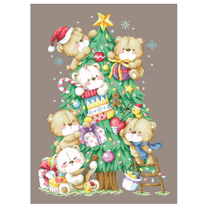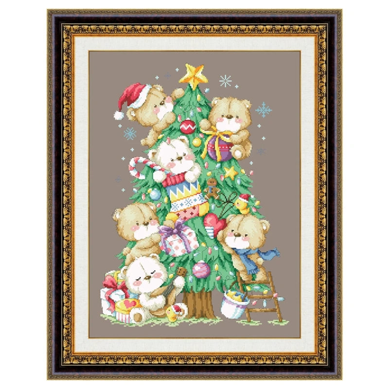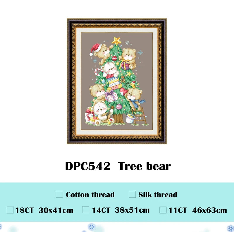 Maak je eigen sfeervolle kerstdecoratie met dit complete borduurpakket. Het ontwerp toont een schattige beer bij een kerstboom, perfect voor de feestdagen. Deze kruissteekset wordt geleverd met alles wat je nodig hebt: katoen canvas (beschikbaar in 18ct, 14ct of 11ct), bijpassend garen (30% extra inbegrepen), naalden en een papieren patroonblad.