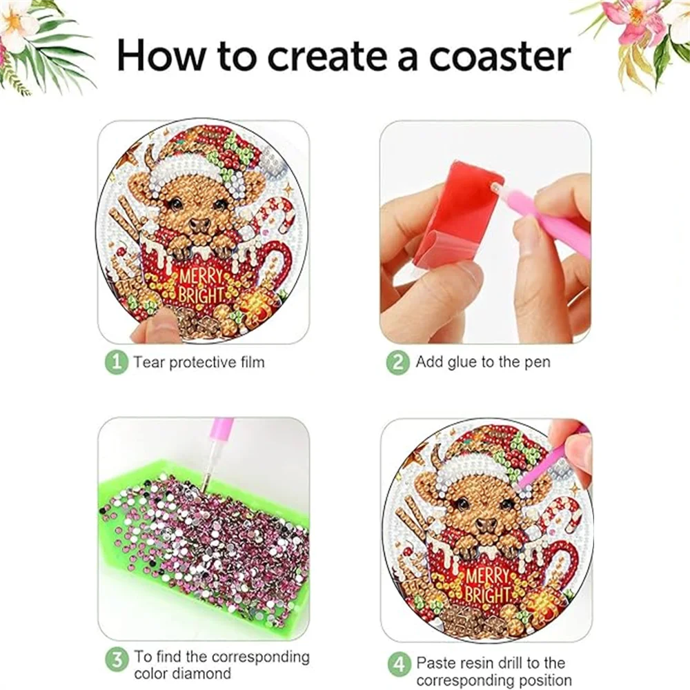 Het maken van deze onderzetters is een ontspannende bezigheid waar zowel volwassenen als kinderen plezier aan beleven. De steentjes worden eenvoudig op de voorgemarkeerde patronen geplaatst voor een schitterend resultaat. De afwerking is glad en duurzaam, waardoor glazen en kopjes veilig kunnen worden neergezet.