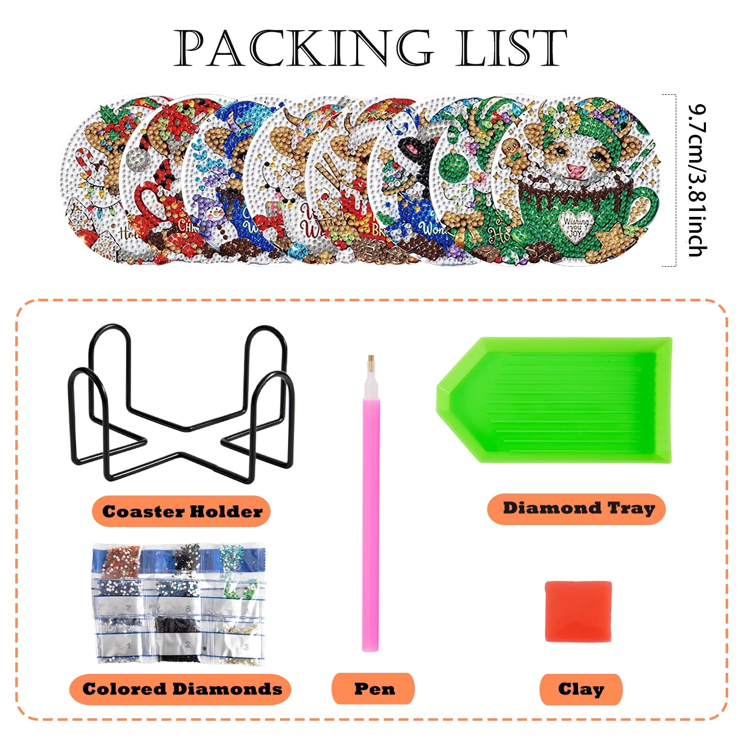 Diamond Painting Onderzetters Dieren – Set van 8 met Houder