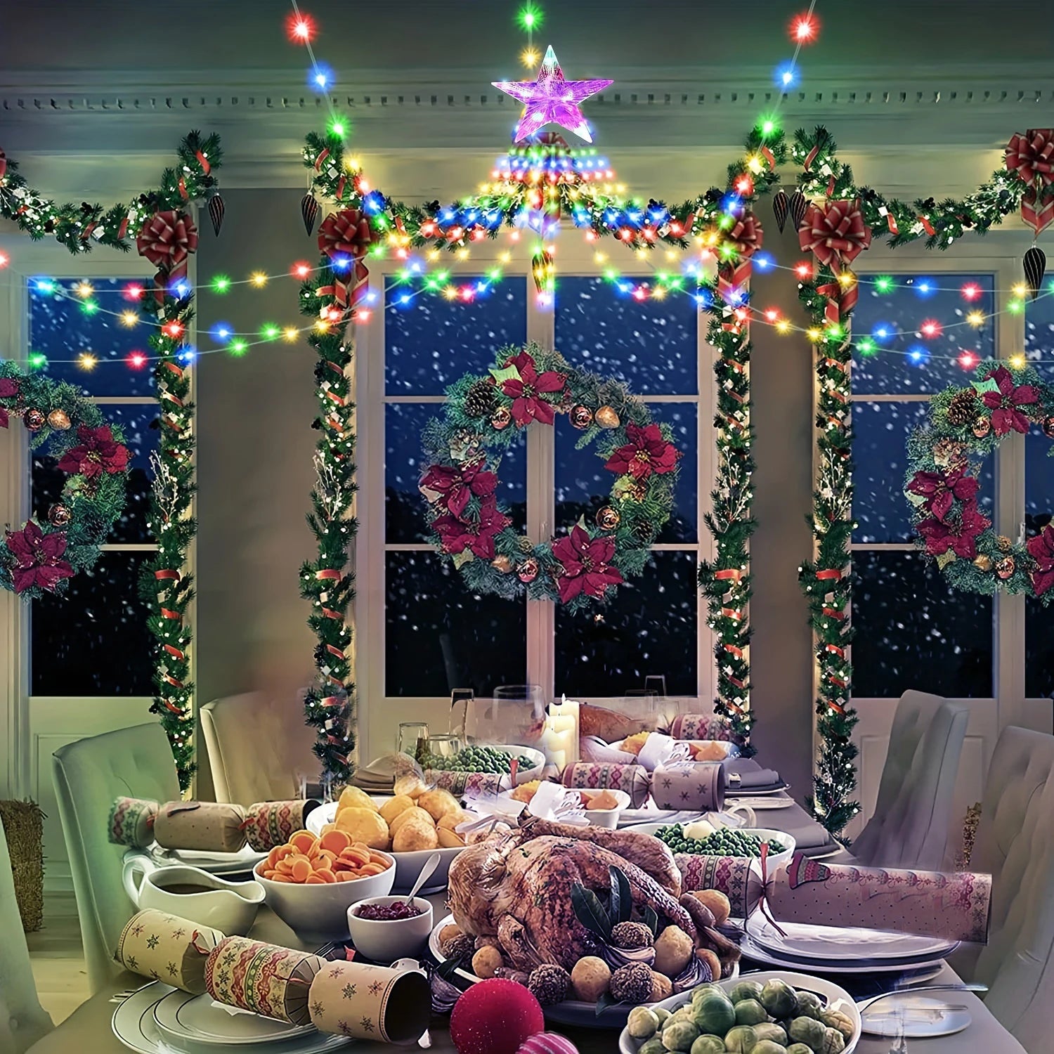 Led Kerstboom Waterval Slingerlicht met Ster Top – 8 Lichtstanden voor Binnen & Buiten