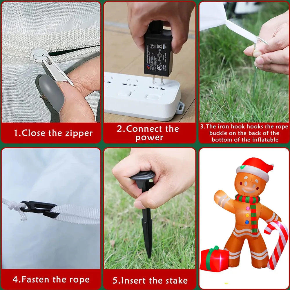Het opblaasbare kerstornament is eenvoudig te installeren. Binnen enkele minuten staat de peperkoekman stevig dankzij de meegeleverde haringen en touwen. De duurzame stof is bestand tegen lichte regen en wind, zodat je hem zorgeloos buiten kunt laten staan. Bovendien is het ornament compact op te bergen wanneer de feestdagen voorbij zijn.