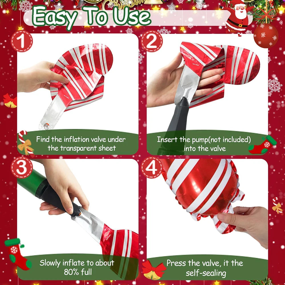 Met een formaat van ongeveer 45 tot 70 cm, afhankelijk van het gekozen ontwerp, zijn deze opblaasbare kerstballonnen groot genoeg om echt op te vallen maar niet te overheersend. Combineer verschillende vormen, zoals de snoepstok, ster en cadeau-ontwerp, om een unieke en feestelijke samenstelling te creëren die perfect past bij jouw interieur of etalage.