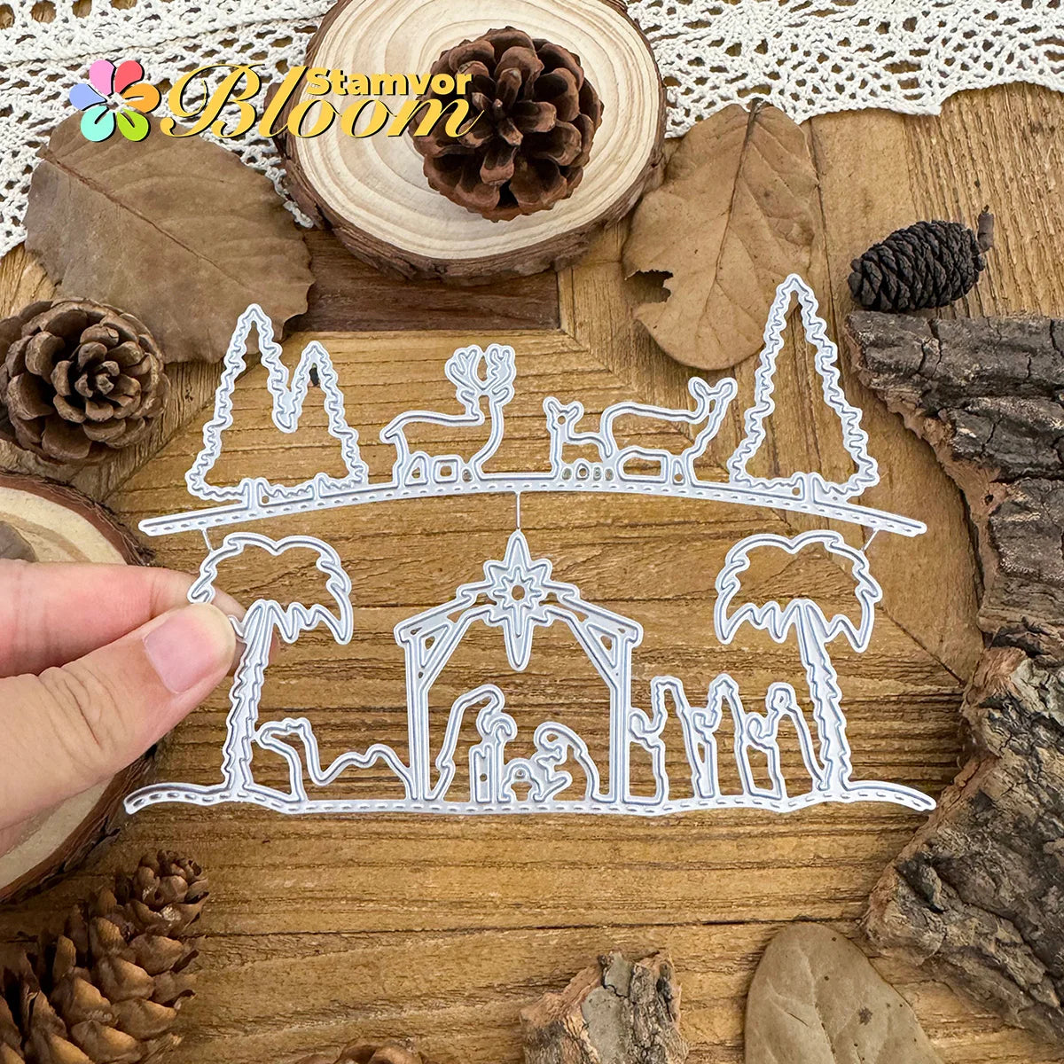 Snijmal kerststal bos half-cut metalen stansvorm voor scrapbooking
