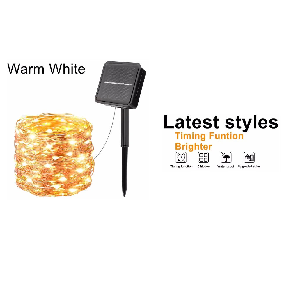Solar Kerstverlichting multicolor buiten – koperkleurige draad met 8 lichtstanden